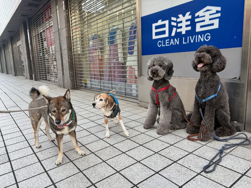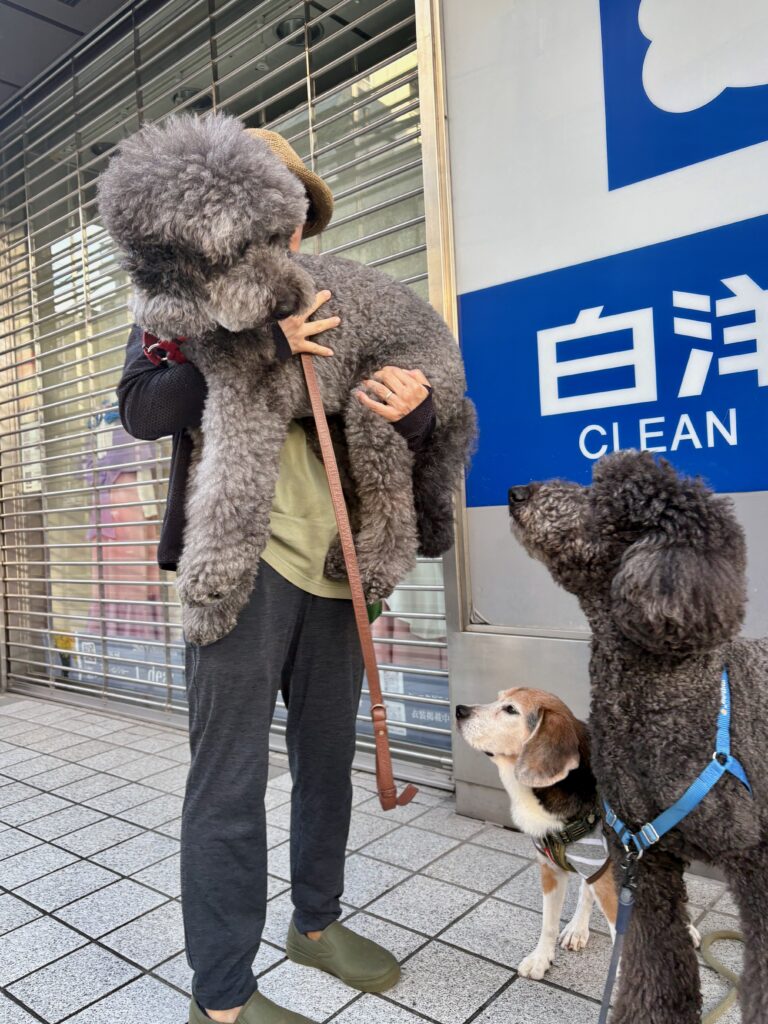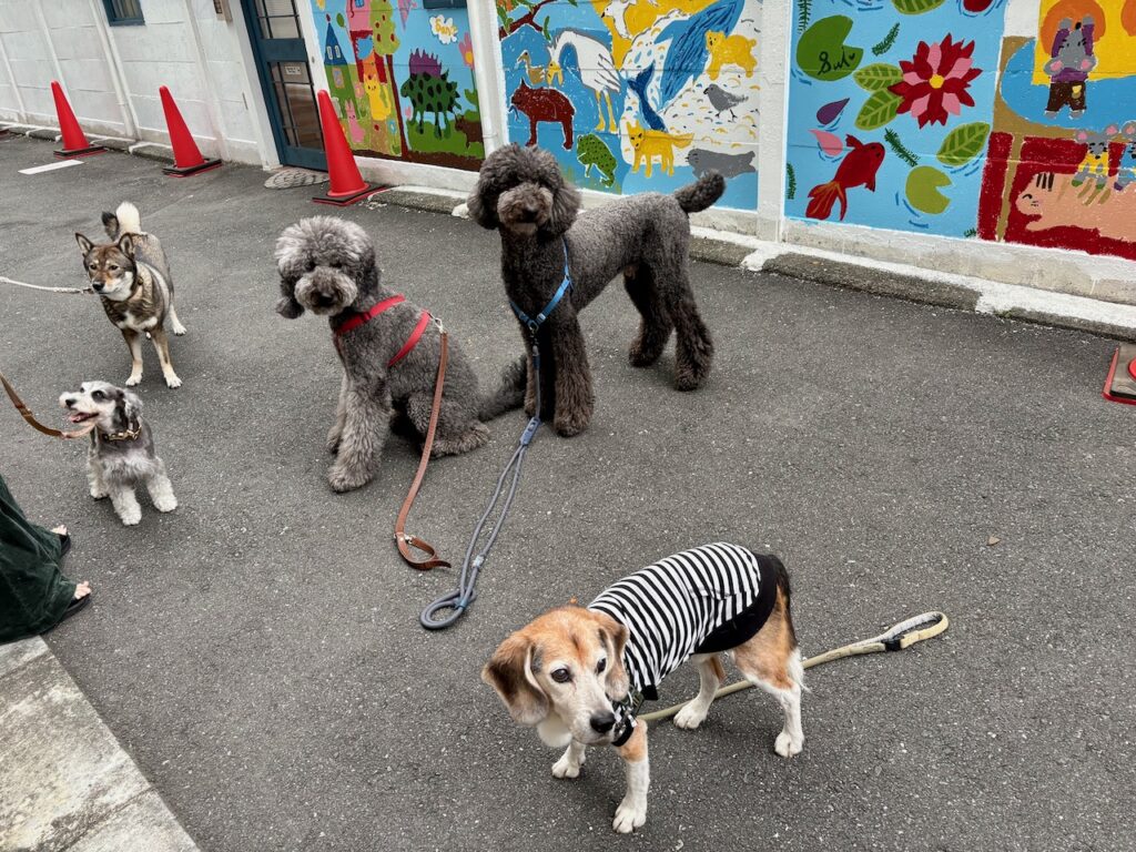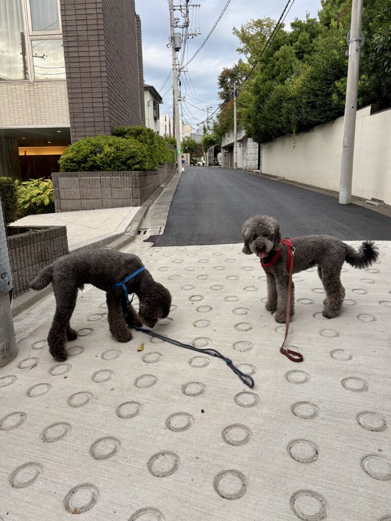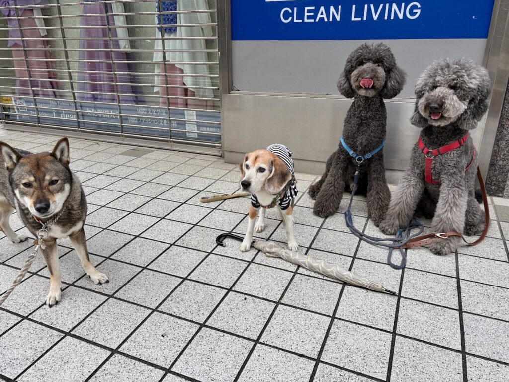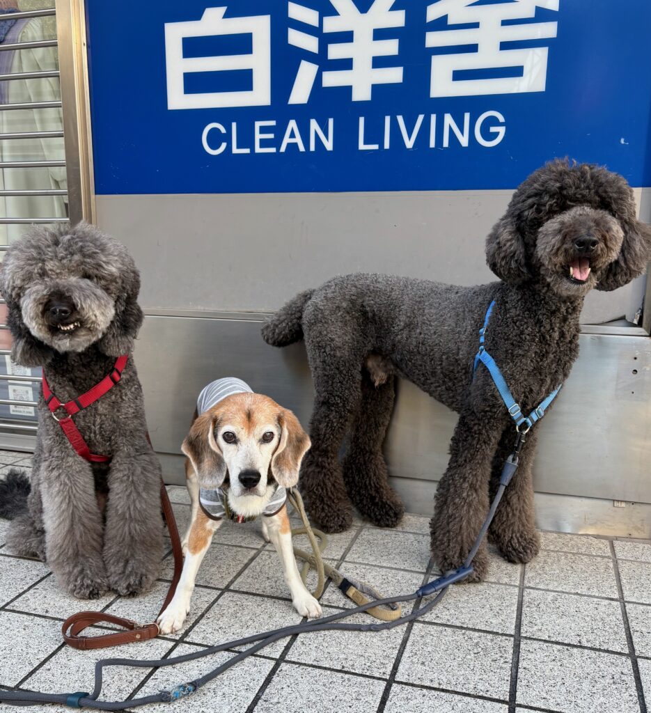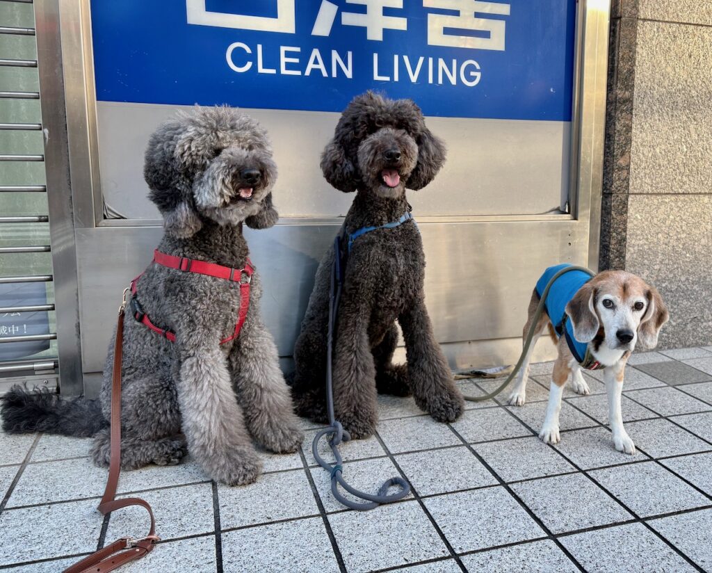 櫻&雪ちゃんち前、ルーシーはやはり座れない