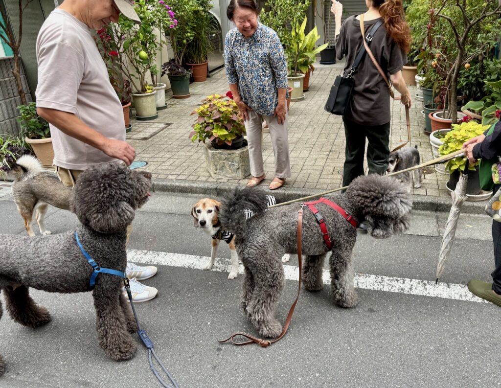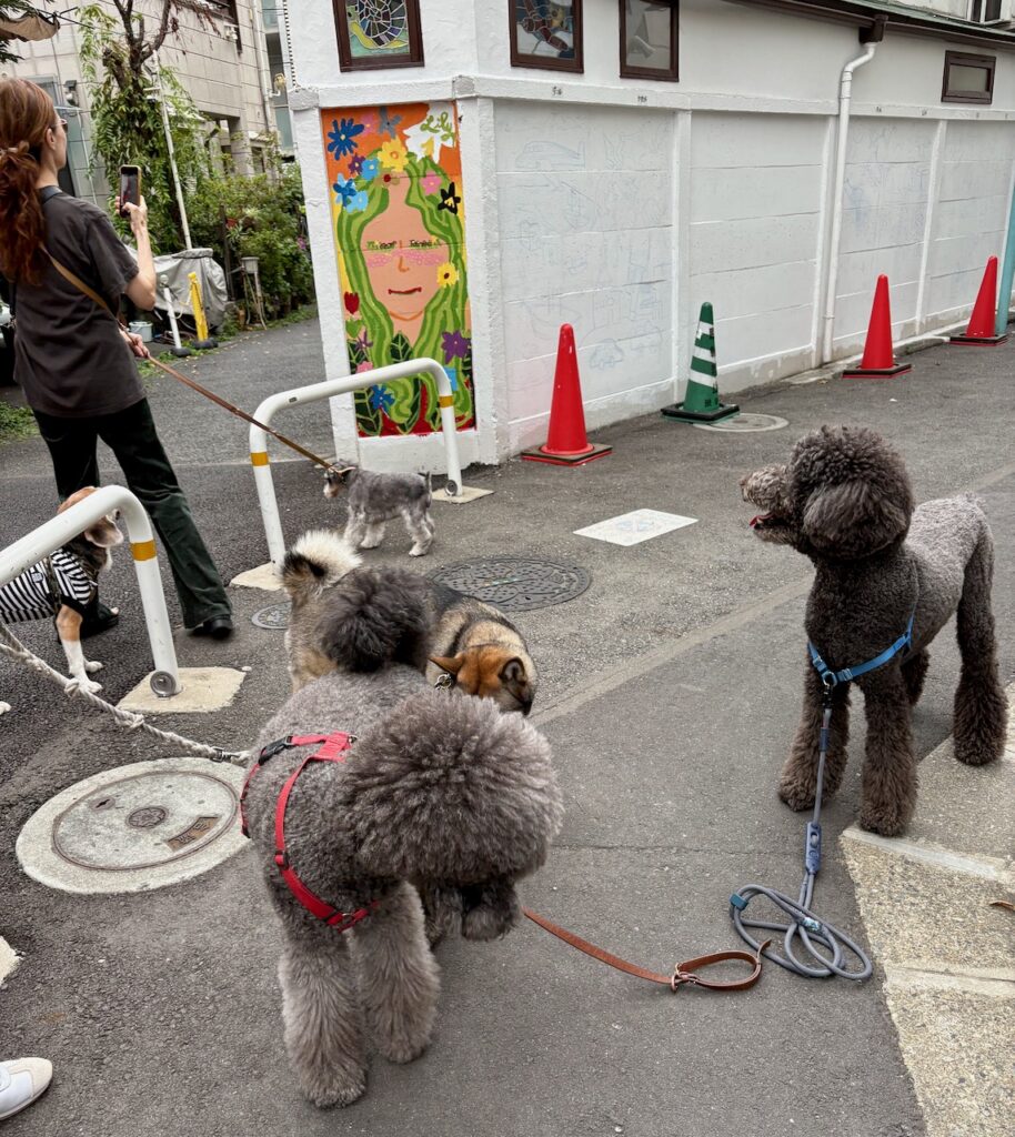 グッディおじさん、アオちゃんとも合流して、テンちゃんち前。壁画更新