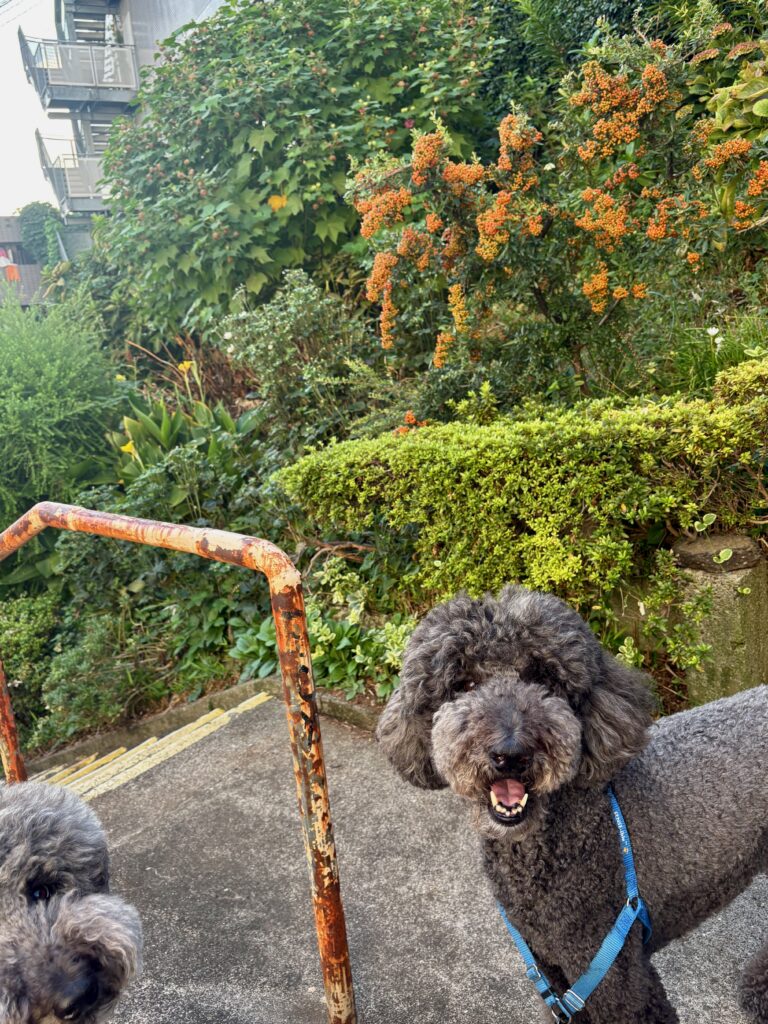 白洋舎前、ほぼ1ヶ月ぶりにルーシー。涼しくなって「遠出できます」