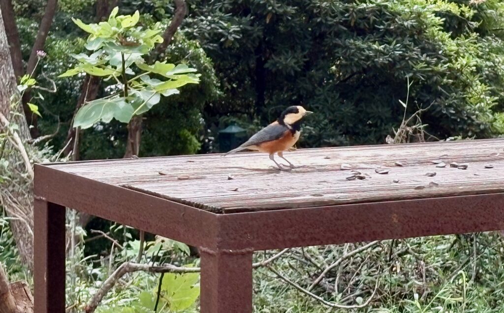人のすぐ近く(1メートル)まで来るヤマガラ、餌台のヒマワリ、あっという間に食べちゃう